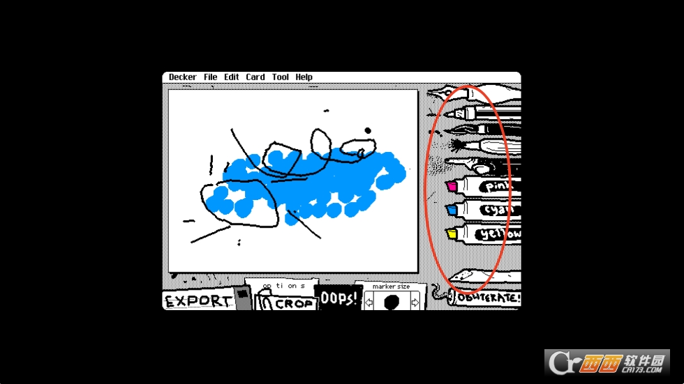 2、使用Wigglypaint需要在工具栏中选择画笔,调整笔头大小和色调以适应不同的创作需求;