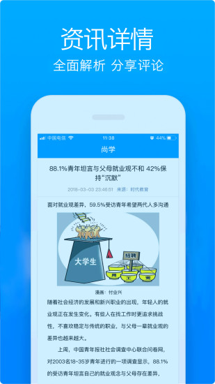 尚学是一个在线教育资讯浏览、查看附近教育机构为一体的产品。学生可以通过资讯了解到升学的各种政策,以及查看附近教育机构的课程信息。通过这种方式让每一个学生方便快乐的学习。