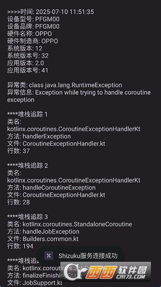 2、接着它就会提示你Shizuku服务连接成功,并列举你手机中各种游戏或应用的进程信息