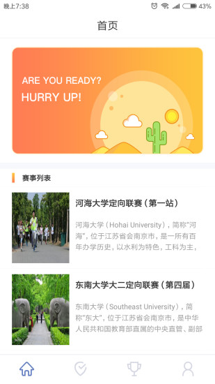 江苏定向app这是一款运动健身应用服务软件,是针对江苏用户提供全民健身平台,你可以通过江苏定向在线查看各种赛事活动,还可以记录用户运动过程数据,欢迎大家前来下载。
