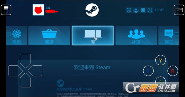 5、连接之后,Steam会以大屏幕形式展现,如果你的移动设备连接手柄就可以直接使用手柄开始游玩,如果没有,Steam也是准备了一套虚拟的按键供你体验。