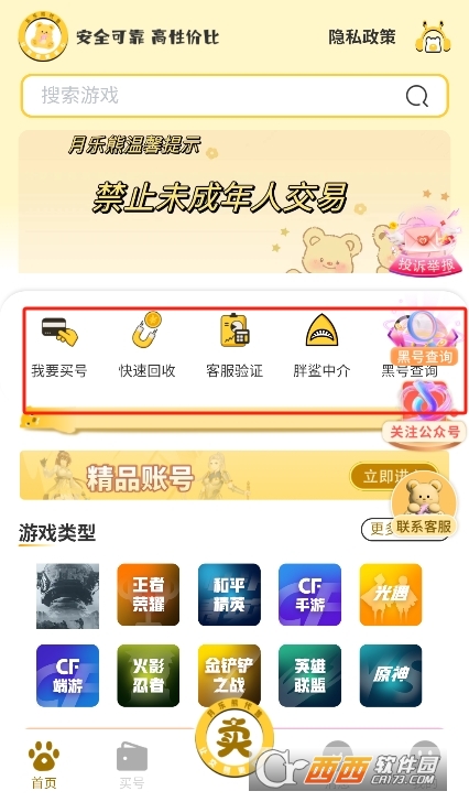 月乐熊游戏交易app安卓版下载2025版是一款全新的游戏账号交易平台,为广大用户们提供热门惊喜游戏资讯和交易体验,包括暗区突围、王者荣耀、和平精英、光遇以及更多游戏栏目,非常精彩,为大家准备了丰富的趣味游戏体验,欢迎来下载试试吧。