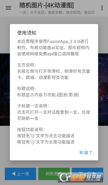 2、一键随机刷美图:区别于传统图片软件繁琐的搜索与筛选流程,随图App将“随机”作为核心特色功能。用户无需输入复杂的关键词,也无需在众多分类中查找,只需点击屏幕,便能随机呈现一张精美的动漫或二次元游戏图片。这种充满未知与惊喜的获取方式,打破了常规的图片查找模式,让用户在一次次点击中收获意外之喜,仿佛开启一场二次元的视觉盲盒之旅,为寻找美图的过程增添更多趣味性。