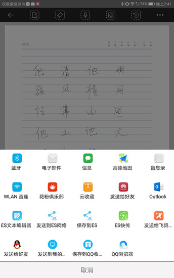 分享-书写的笔迹内容分享给微信、QQ好友或发送邮件