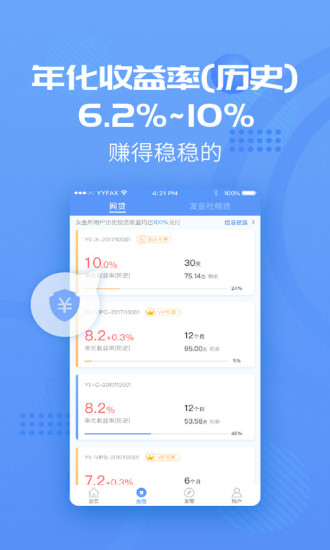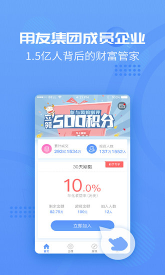 用友集团旗下移动互联网金融平台,您的投资理财神器! 理财更快人一步,随时随地赚收益,躺着也能有钱花! 领先的移动投资理财超市,简单下载,轻松赚钱!