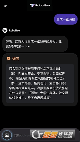 2、然后它就会想一位专业顾问一样询问海报的有关设计内容