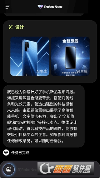 作为美图公司倾力打造的AI创作助手,RoboNeo专为影像与设计领域的创作者而生,以自然语言交互为核心亮点,让“一句话搞定创作”从概念变为现实。无论是修图、设计还是视频制作,用户只需通过简单对话下达指令,即可开启高效创作流程,大幅降低专业创作的技术门槛。在人像处理领域,RoboNeo展现出强大的智能识别能力:支持智能换装、姿态调整、水印清除、背景替换等实用功能,同时能精准捕捉人像细节,确保修图效果自然真实,避免过度处理导致的失真问题。针对设计需求,应用内置的专业设计模块堪称创作者的“灵感加速器”。用户无需掌握复杂设计技巧,通过一键操作即可生成高质量海报、品牌Logo、电商推广物料等内容,尤其贴合电商从业者快速制作营销素材的需求,助力提升推广效率。