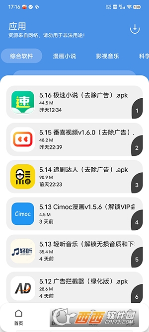 2、实时更新资源库,紧跟潮流热点:YG软件库APP运营团队持续关注网络资源动态,实时更新资源库内容。漫画小说板块每日跟进最新章节;影视动漫资源及时上架热门新片、新番;应用区第一时间收录各大应用商店的精品软件与更新版本。用户打开软件,即可获取当下最热门、最新鲜的资源,始终紧跟数字娱乐与应用潮流,保持对资源的新鲜感与探索欲。
