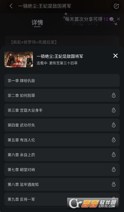 4、创作模式:点击“创作”按钮,你可以对任意章节进行二次创作,并分享给其他用户。