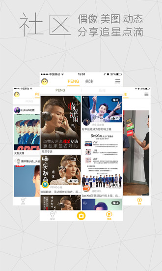 PENG社区全新的社交聊天交友软件,粉丝爱豆们的专区集明星直播,粉丝互动,娱乐八卦,探班应援,偶像周边,随手掌握关注的他的一切动态!需要的用户赶快前来下载吧!