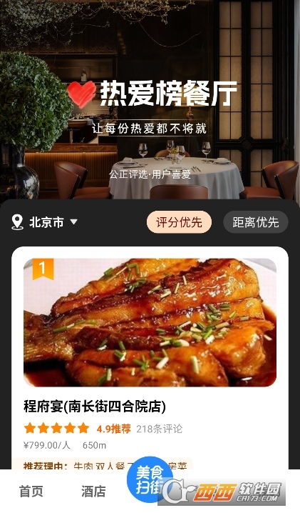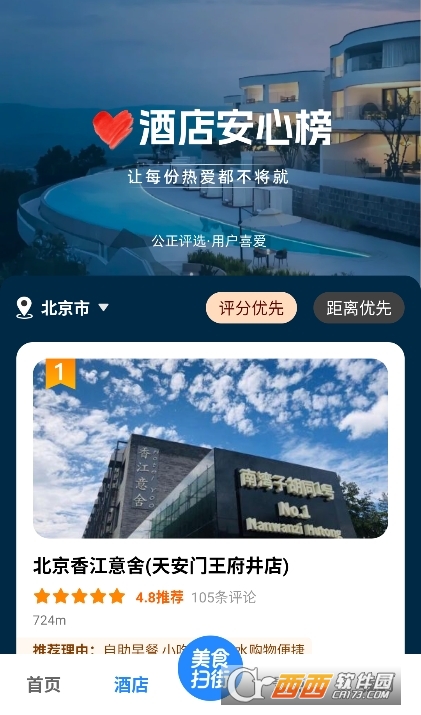 高评扫街榜app是一款专注于旅行推荐榜单的综合服务平台,核心为旅行者提供城市旅行信息与预订服务,支持定位不同城市,查询当地美食、美景、住宿等内容,适合计划旅行、正在旅行的用户,满足出行前规划与行程中参考的需求。软件整合推荐榜单与用户真实评价,帮助用户避开“踩雷”选项,快速找到优质旅行资源,同时支持在线预订住宿、门票等,不用切换多个平台,一个app就能搞定旅行相关事宜,让旅行安排更简单,操作门槛低,新手也能轻松上手。
