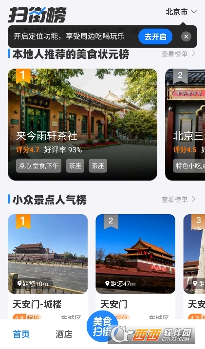 3、定位功能实用,支持实时定位与手动切换城市,实时定位能快速推荐周边美食、美景,适合旅行中临时寻找好去处;手动切换城市则方便提前规划异地旅行,提前了解目的地信息,灵活适配不同旅行阶段需求。