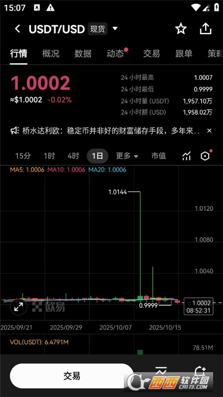 熟悉界面:打开App,浏览“行情”页,点击感兴趣的币对,查看详细的K线图和最新趋势内容。