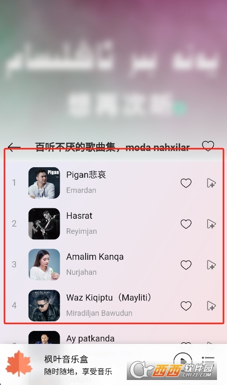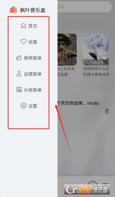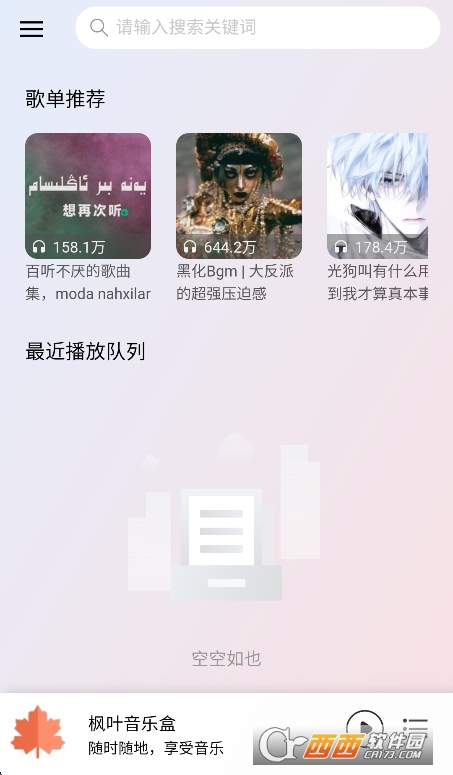 2、智能推荐与个性化设置:根据用户的听歌习惯,枫叶音乐盒能够智能推荐热门及匹配歌单。同时,它还支持创建自定义歌单、导入其他音乐APP的歌单等功能,满足用户的个性化需求。