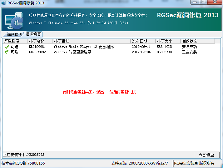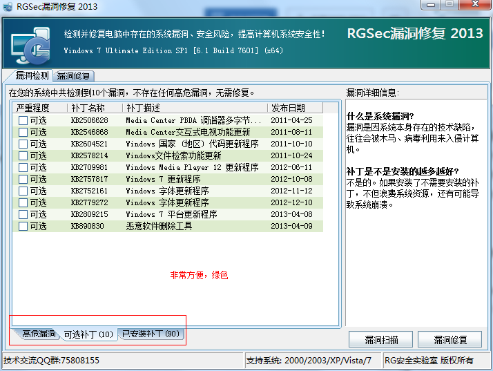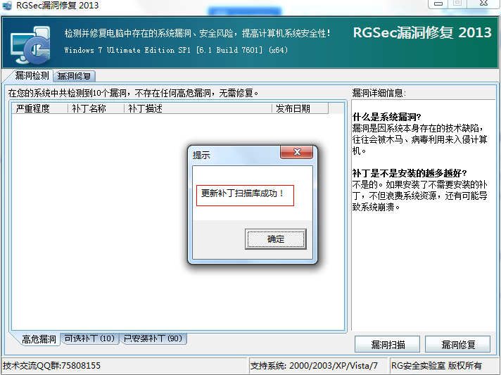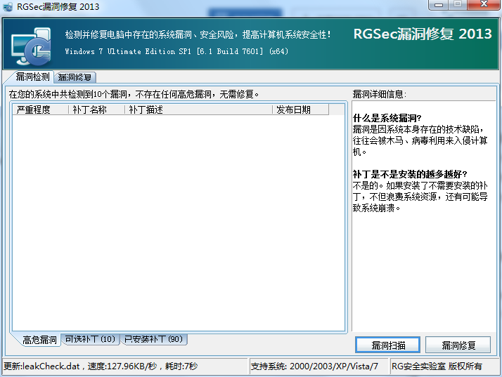 RGSec 漏洞修复2014支持2k,2k3,xp,vista,win7 32bit&64bit。RG安全实验室长期关注计算机与网络安全。