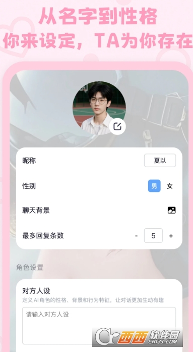 高度个性化AI角色定制:支持从昵称、性别、外貌,到性格、背景、说话风格的全维度自定义,还能设置聊天背景与最多回复条数,可打造专属三维AI伙伴,满足用户对专属互动对象的个性化需求。