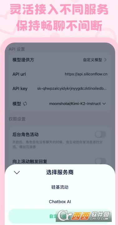 灵活API与多模型适配:可接入“硅基流动”“Chatbox AI”等服务商,支持自定义模型,还能设置 Moly 币与 API Key 的扣款优先级,确保不同用户都能稳定畅聊。