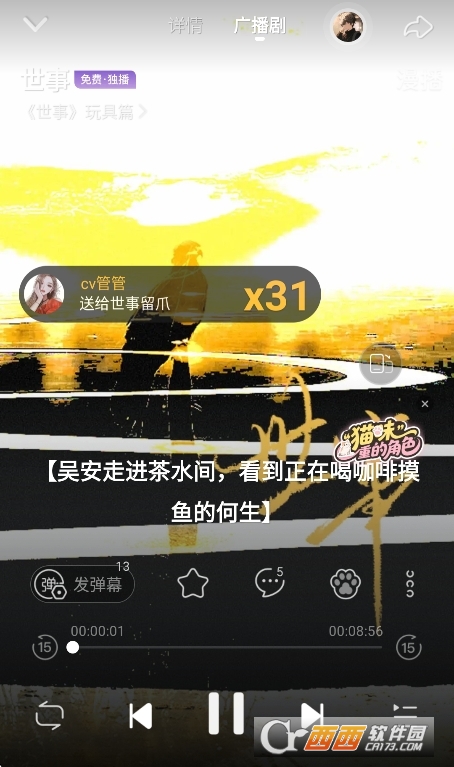 2、字幕与弹幕功能,收听时可开启字幕辅助理解内容,同时能发送和查看弹幕,与其他小伙伴实时讨论剧情,分享感受。