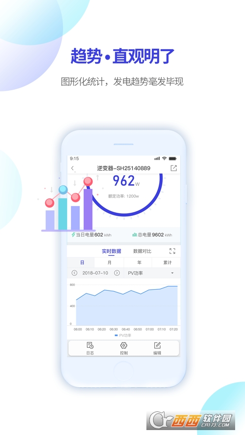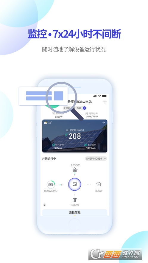 可以便捷管理光伏电站,可以随时随地查看电站的发电、收益情况和设备的运行状况,远程控制光伏设备,查看设备的实时数据和历史信息。