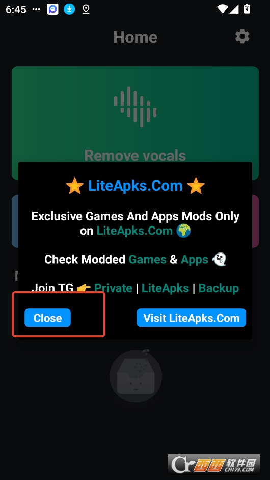 在西西软件园下载并且安装该款软件,打开软件即可,先点击close关闭这个页面
