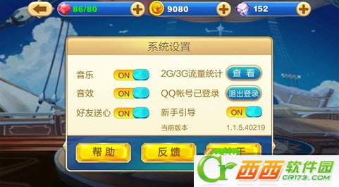 【设置】:游戏中音乐声音的大小,还有2G/3G网络的统计,另外玩家可以在这里开启或关闭好友送心功能。