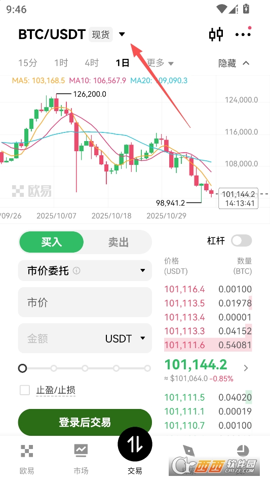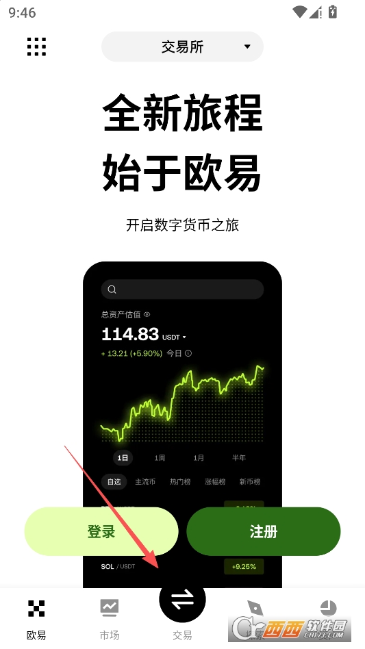 进入软件之后我们点击下方中间的交易按钮进入交易版块