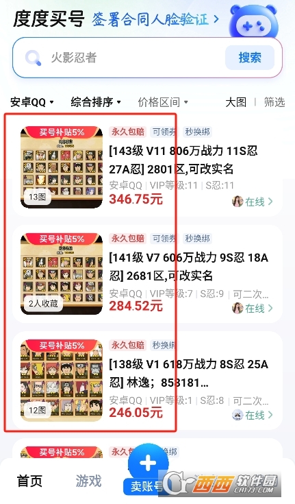 2、海量账号资源库:与众多游戏厂商、工作室及个人卖家建立深度合作,打造庞大且丰富的账号资源库。涵盖角色扮演、竞技对战、模拟经营等各类游戏品类,无论是拥有稀有皮肤、高等级装备的热门账号,还是小众游戏中具有特殊意义的账号,都能在平台精准匹配。并且持续更新账号资源,实时上架热门游戏的新账号,确保玩家始终能找到符合期待的交易对象。