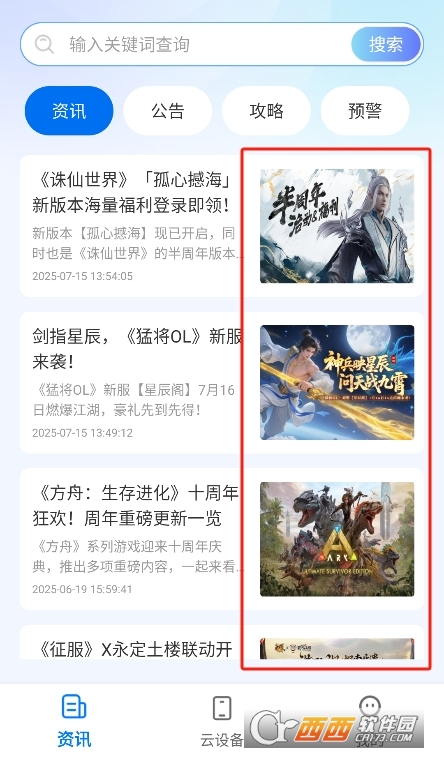 3、游戏资讯获取功能:整合众多与游戏相关的资讯信息,按游戏类型、热度等分类展示,用户可浏览游戏更新公告、活动信息、攻略技巧、行业动态等内容。支持搜索功能,用户输入想了解的游戏名称,能快速找到相关资讯,及时获取所需的游戏信息,助力游戏体验。