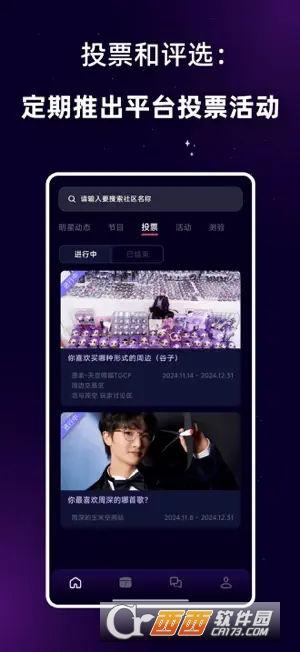 三是投票评选板块,涵盖音乐榜单、影视奖项、人气评选等多种投票活动,粉丝可每日为偶像投票,查看实时票数排名,部分投票活动还设置专属应援奖励。