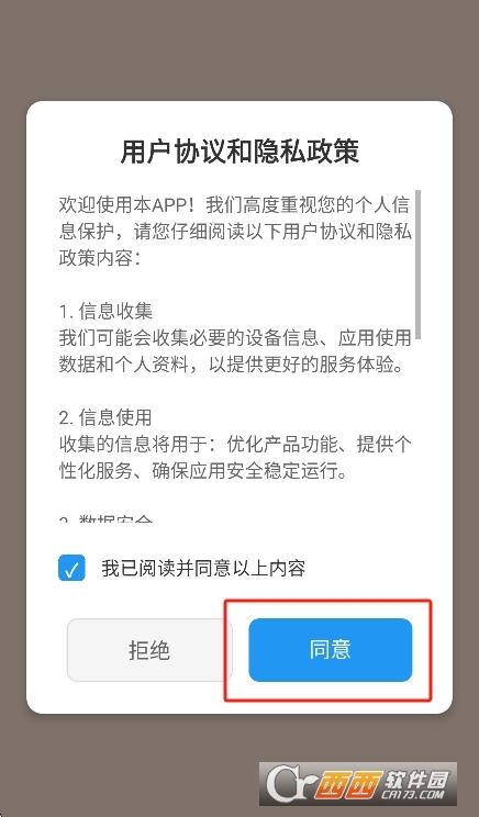 1、在本站下载软件,同意隐私协议