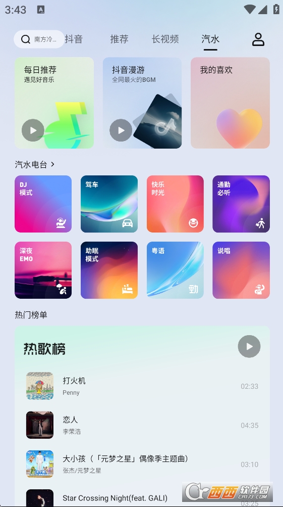还有专门的音乐电台,包括了每日推荐,汽水电台等