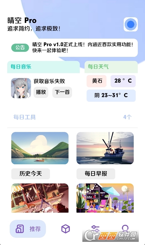 晴空Pro工具箱app安卓版下载是一款免费的工具箱软件,提供专业的手机端工具箱合集,非常好用,提供日常工具、实用工具、综合工具以及图片工具等等,非常实用,获得精彩的功能体验,感兴趣的小伙伴们欢迎来下载试试吧。
