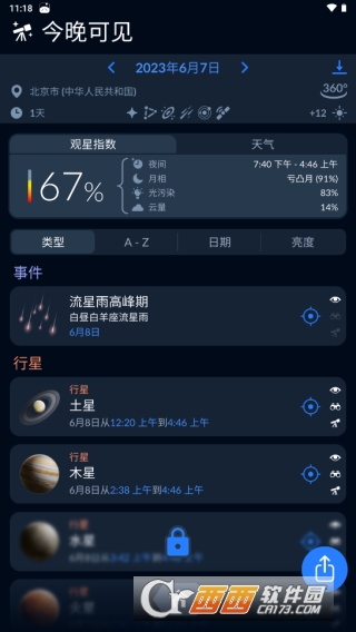 天象规划系统:内置动态天文日历,标注流星雨、日食、行星合相、月相等重大事件,提供个性化“观星指数”——结合云量、月相、光污染等数据生成百分比评分,精准推荐最佳观测时段。支持自定义事件提醒,避免错过天文奇观。