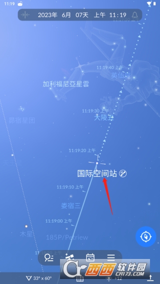 7、点击国际空间站还可以跟随空间站行径轨迹观看星空