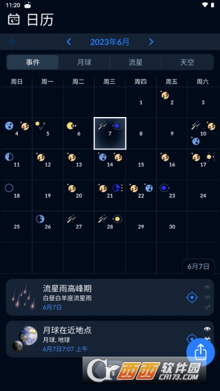 9、可打开日历,查看事件、月球(满月)、流星、天空等
