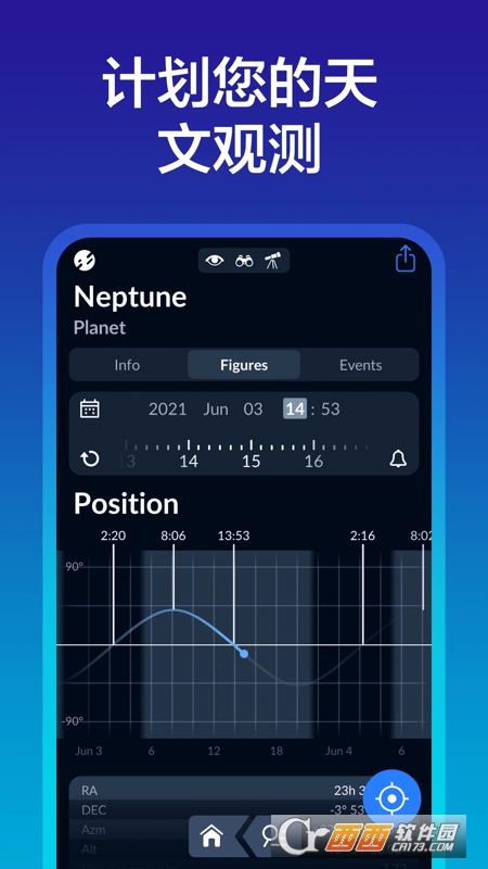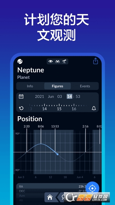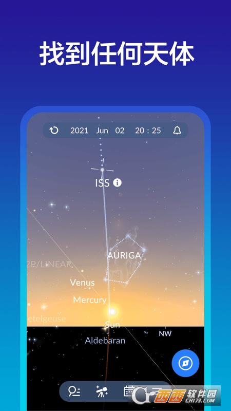 时空探索工具:“时间机器”功能可回溯公元前3000年或预览公元5000年的星空状态,直观展现天体运动轨迹;“互动轨迹”模块能实时显示天体整晚运动路径,解决树木、建筑遮挡的观测难题。