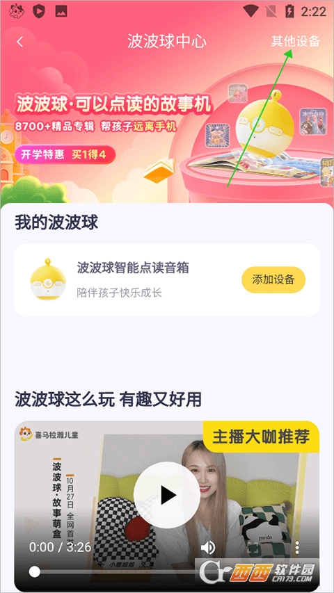4、波波球智能点读音箱的用户可以在打开的新页面中按页面提示进行操作即可,其他设备用户需要在打开的新页面中点击【添加设备】。